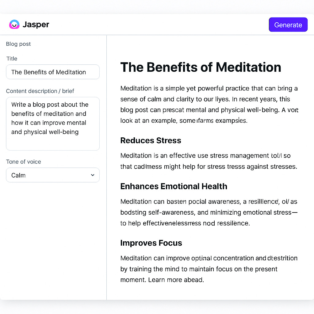 This multi-stage approach dramatically improves coherence and depth, mimicking a human writing process. Experienced users see far better results this way compared to treating Jasper as a simple one-step generator.